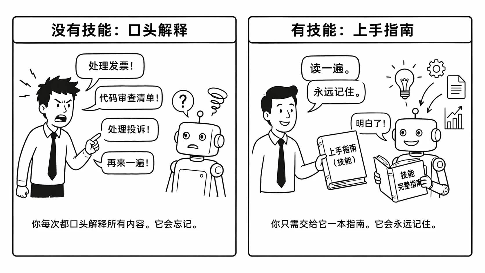 | 可复用提示词 | 微波炉上的“指定按钮”(如:/解冻、/爆米花) | 由用户主动触发的、固定的、单一功能的指令 | 作为主动复用 prompt 的快捷方式 |